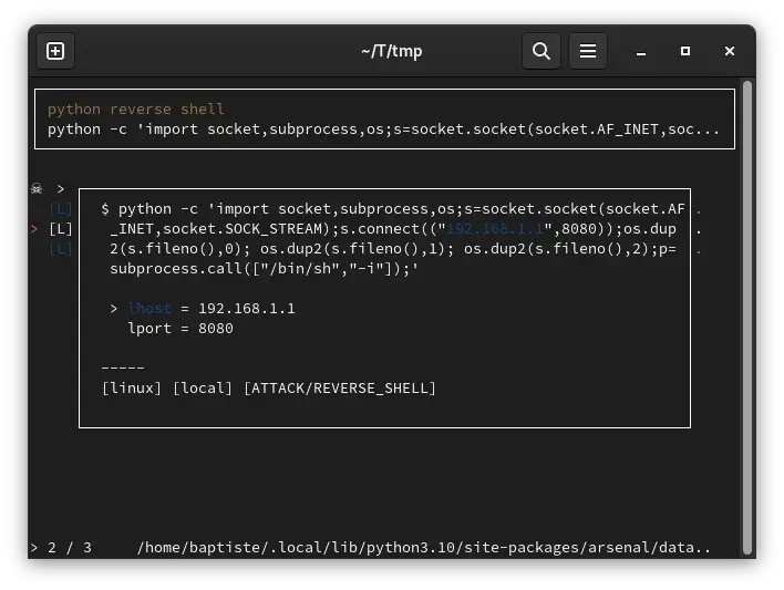 Si vous faites régulièrement du “Capture The Flag”, cet outil écrit en Python et développé par Orange Cyberdefense vous sera certainement très utile. Grâce à lui, vous pouvez rechercher une commande stockée dans sa base de données et il vous fournira une liste d’exemples. Vous pouvez également ajouter vous-même les commandes de votre choix.