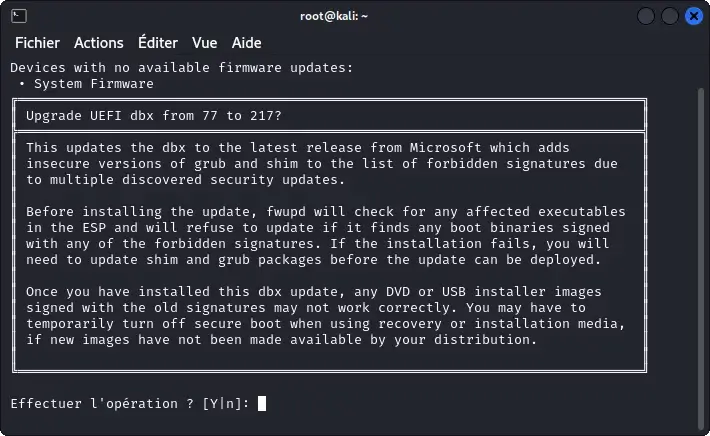 Pour installer fwupd, rien de plus simple, il suffit d’exécuter cette commande :