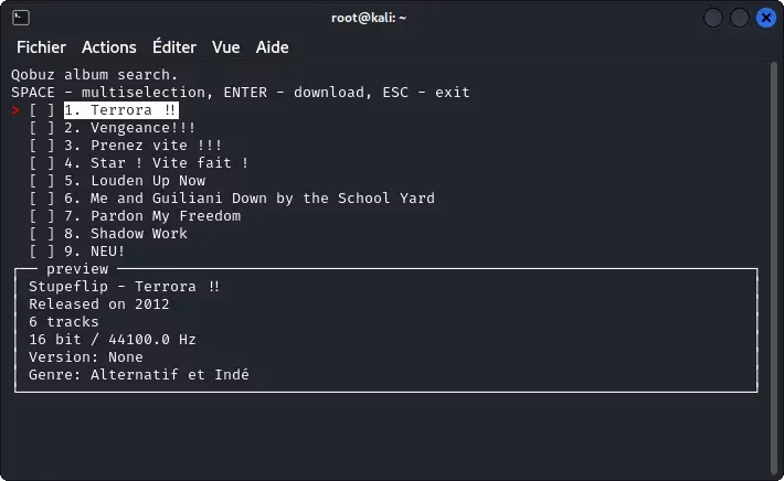 La commande recherche Stupeflip vite !!! sur Qobuz, et le télécharge :
